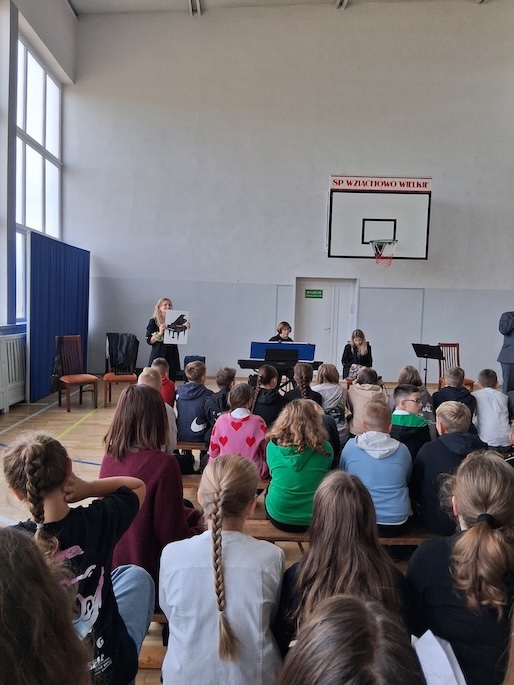 Celem koncertu było przybliżenie uczniom życiorysu i twórczości Fryderyka Chopina.