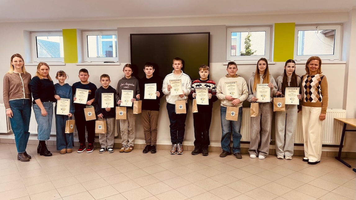 Uczennice z dumą i pełnym zaangażowaniem reprezentowały naszą szkołę w konkursie, pokazując ambicję oraz wiedzę. Choć tym razem nie stanęły na podium, jesteśmy z nich niezwykle dumni i z całego serca dziękujemy za piękny udział.