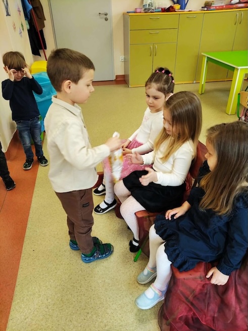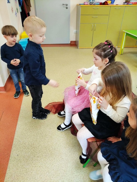 W naszej grupie „Pszczółki” radośnie świętowaliśmy Dzień Kobiet. Tego dnia chłopcy pamiętali o wszystkich dziewczynkach i przygotowali dla nich miłą niespodziankę. Nasze małe kobietki zostały obdarowane pięknymi prezentami, które sprawiły im wiele radości.