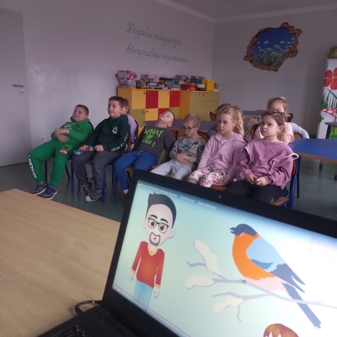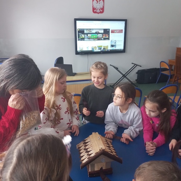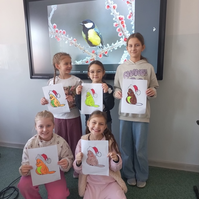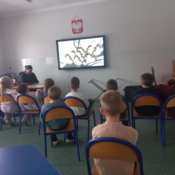 Uczniowie otrzymali ulotki przypominające o potrzebach ptaków i zwierząt gdy za oknem mróz i śnieg. Na zajęciach świetlicowych dzieci obejrzały film edukacyjny związany z dokarmianiem ptaków